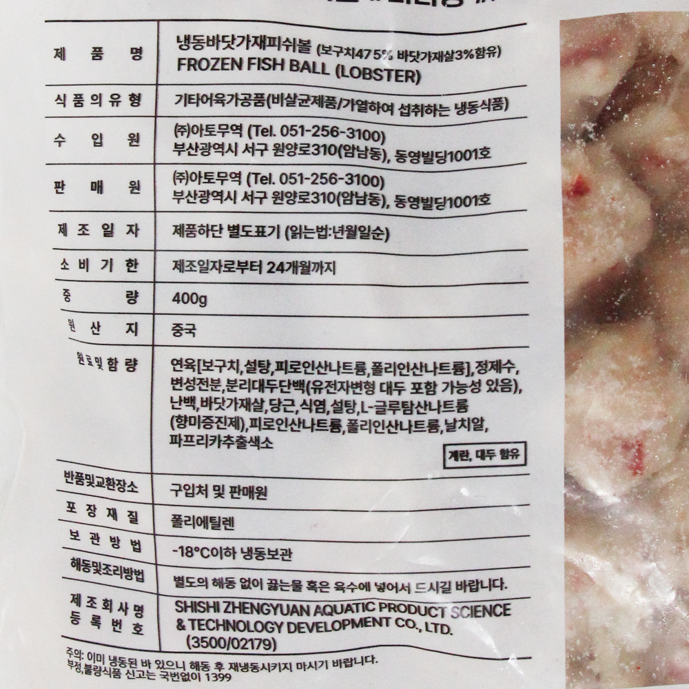 | 제품명 | 바닷가재피쉬볼 400g/아토무역 |