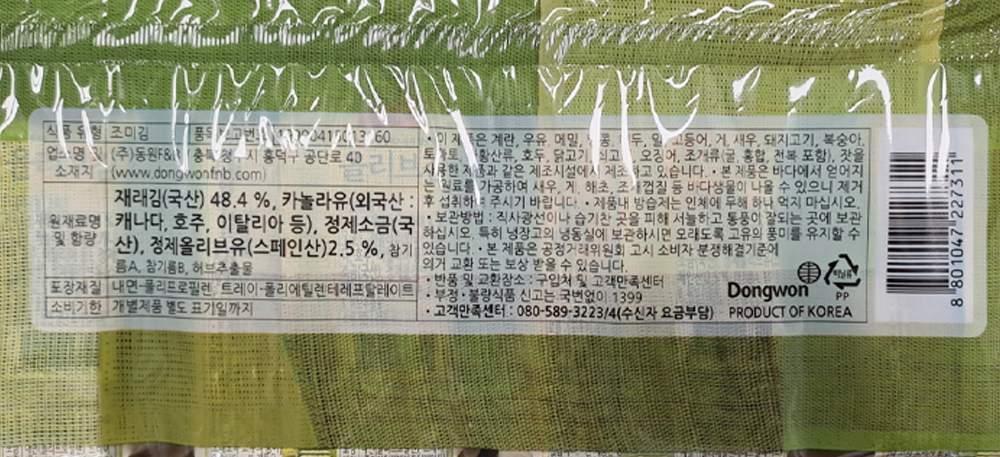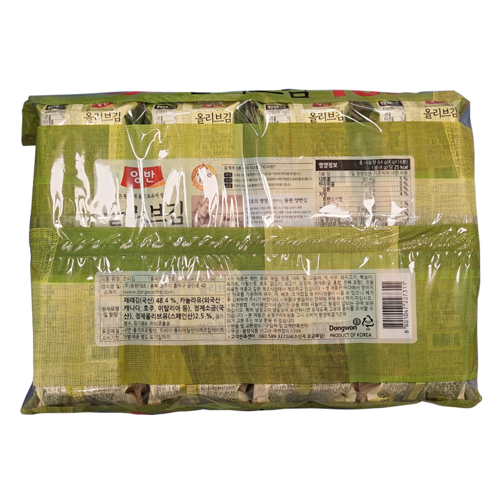 | 제품명 | 동원 양반 올리브김(4g*16봉)/동원F&B |