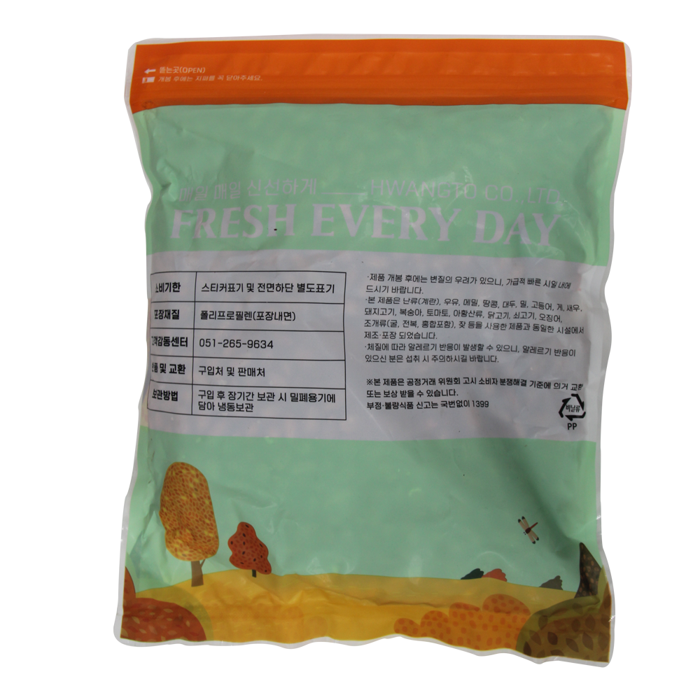 | 생산자 및 소재지(수입품의 경우 생산자, 수입자 및 제조국) | 원산지 : 중국산 수입원 : (주)황토식품 소분원 : (주)황토식품 |