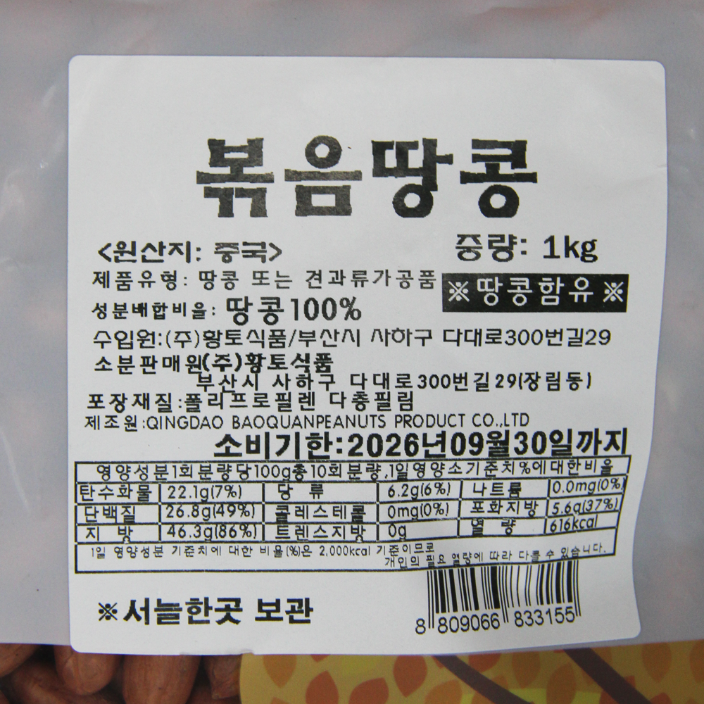 | 제품명 | 볶음땅콩 1kg /황토식품 |