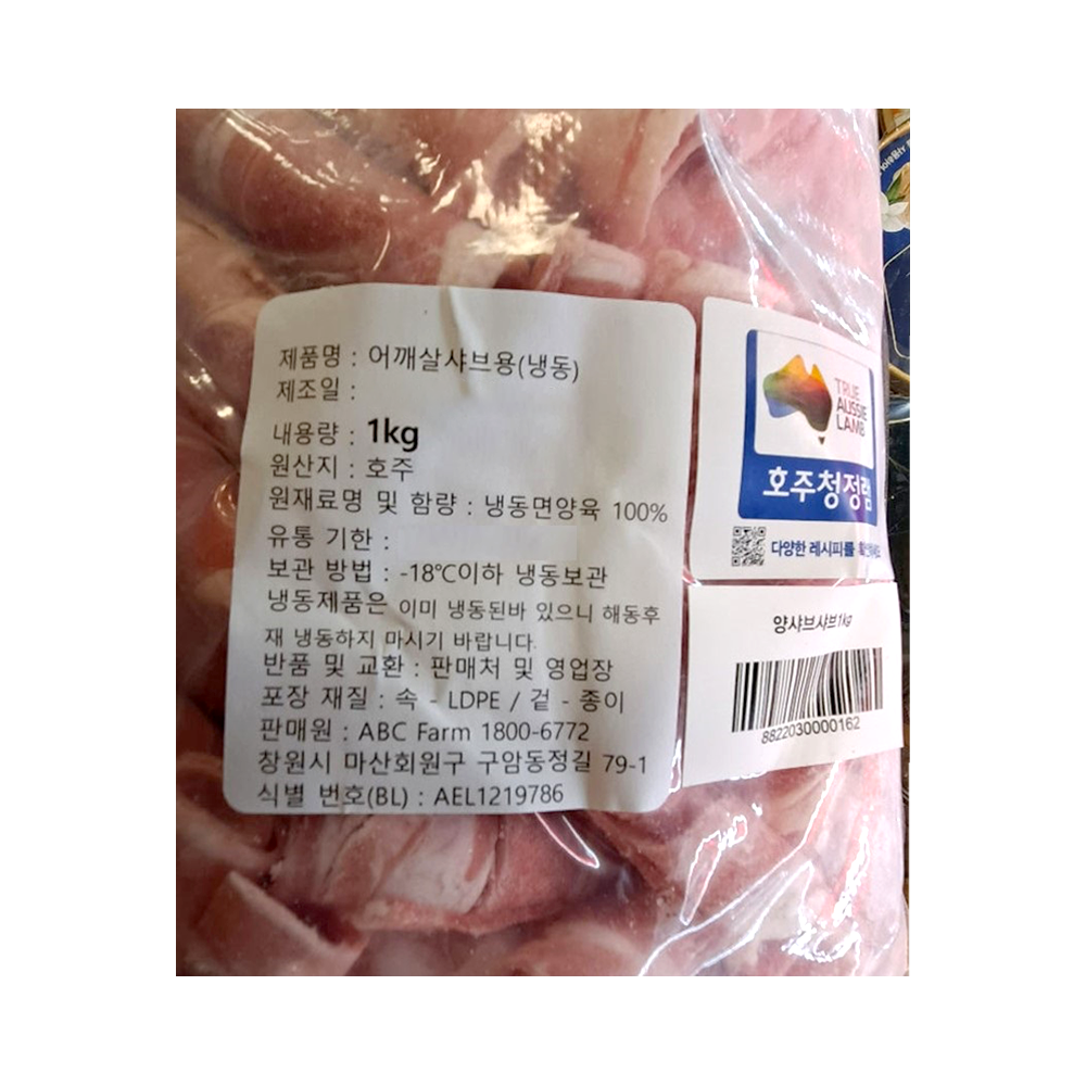 | 품목 또는 명칭 | 양 샤브샤브 1kg (호주산) /에이비씨팜 |