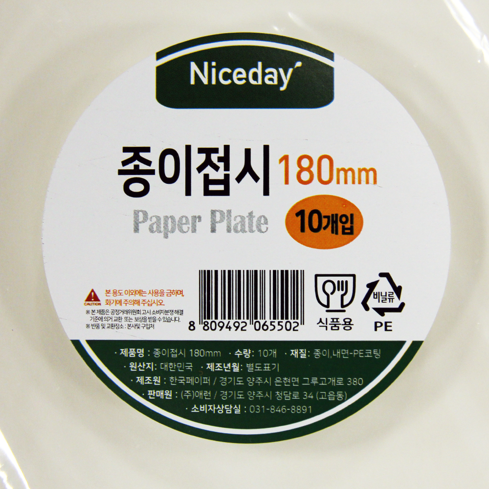 | 제품명 | Niceday) 종이접시 180mm /애런 |