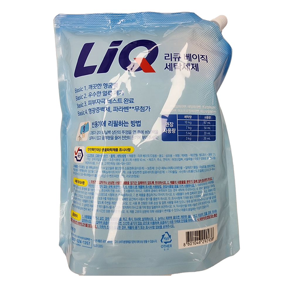 | 제품명 | 리큐 베이직 세탁세제(드럼용) 2L /애경 |