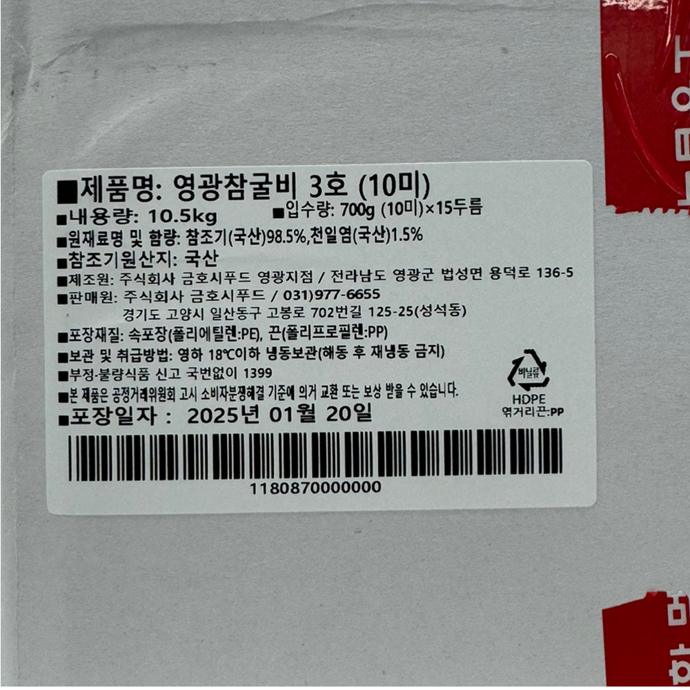 | 품목 또는 명칭 | 영광 참굴비(3호) 10미 700g/금호통상 |