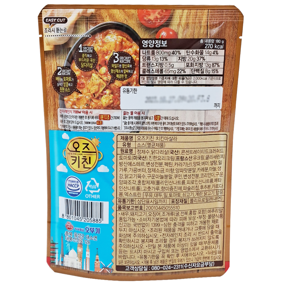 | 제품명 | 오즈키친 치킨마살라 카레 180g/오뚜기 |