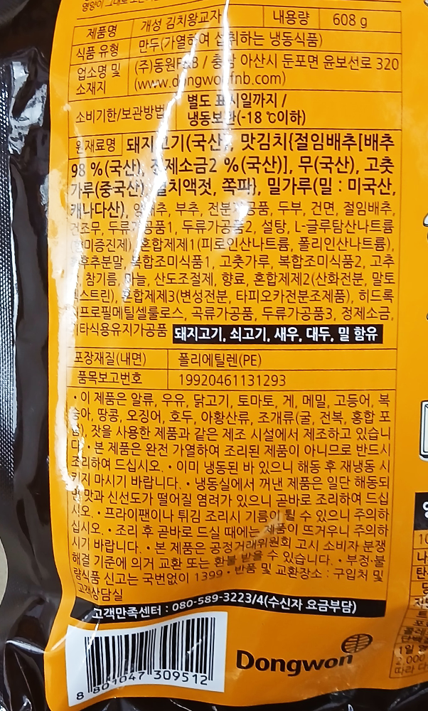 | 제품명 | 동원 개성김치왕교자 608g/동원F&B |