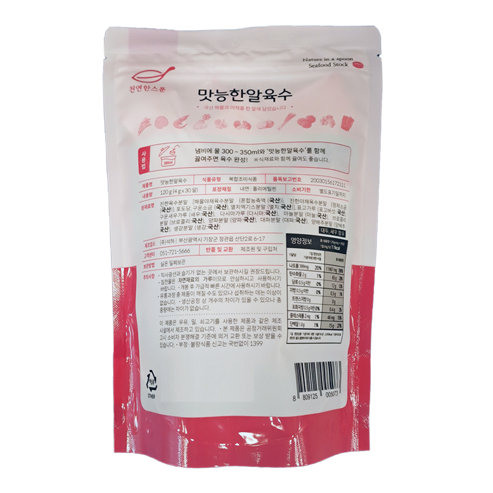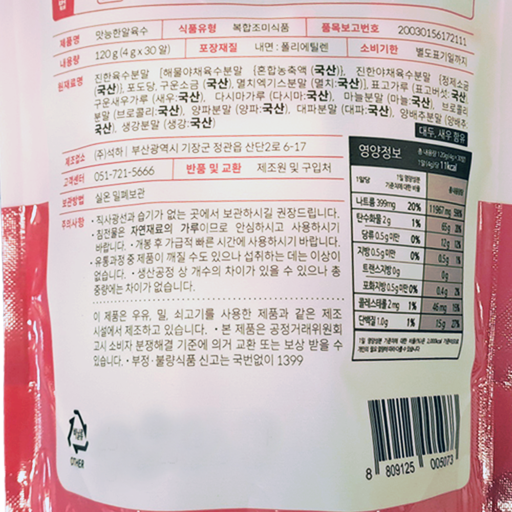 | 제품명 | 맛능 한알육수(깊은맛) 120g/석하 |