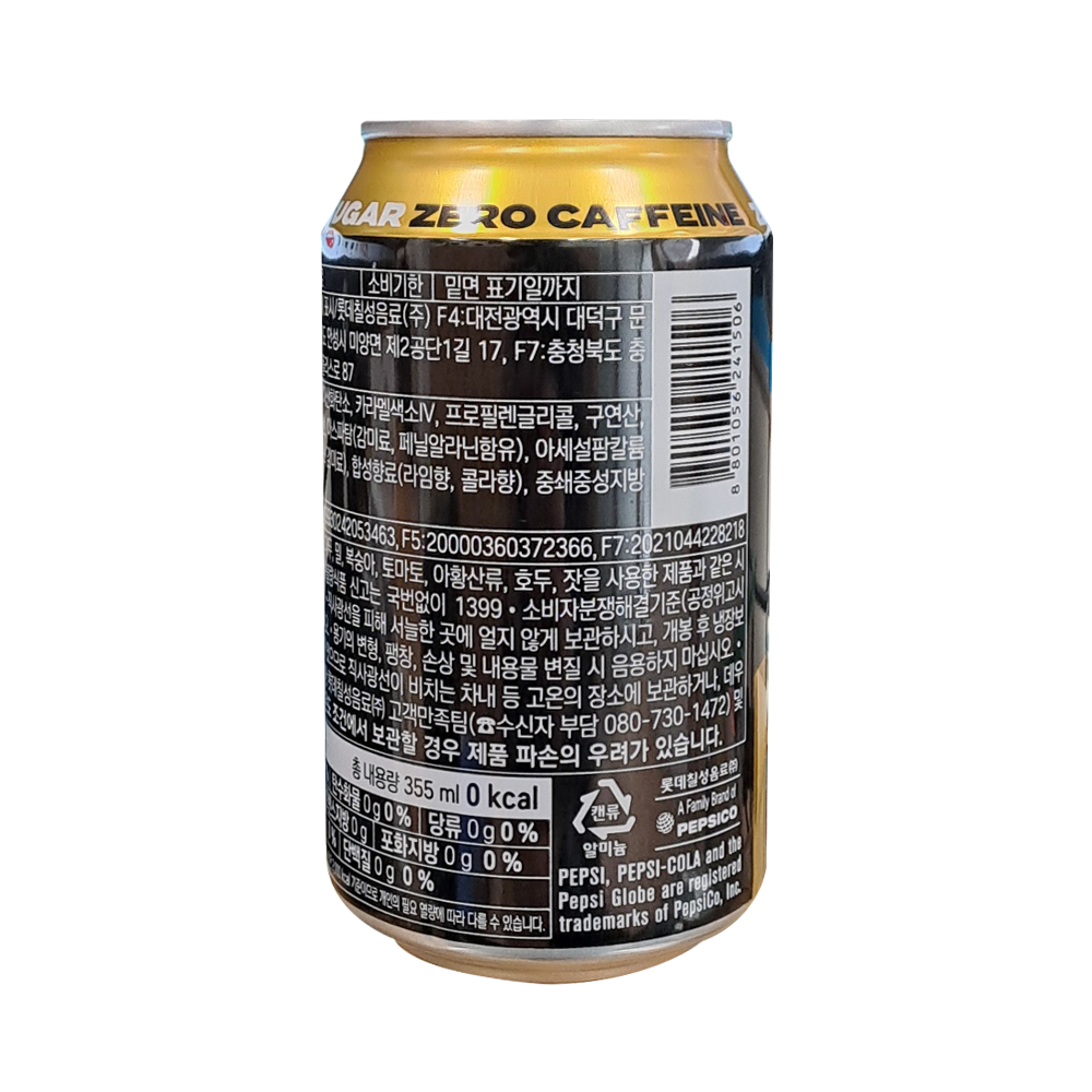 | 제품명 | 펩시콜라 ZERO 슈거·카페인 355ml(라임향)/롯데칠성 |