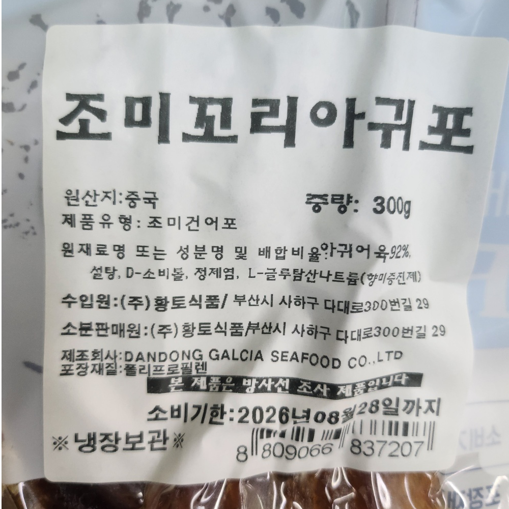 | 품목 또는 명칭 | 조미꼬리아귀포 300g/황토식품 |