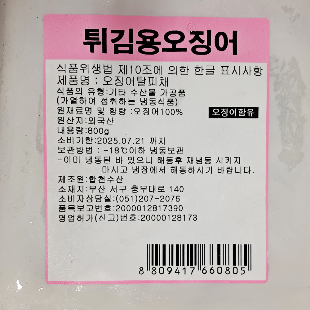 | 품목 또는 명칭 | 오징어채 800g (탈피·블럭 외국산)/합천수산 |