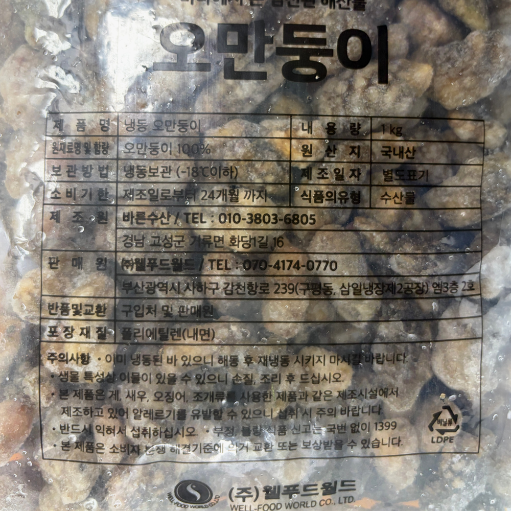 | 품목 또는 명칭 | 냉동 오만둥이 1kg/국내산 |