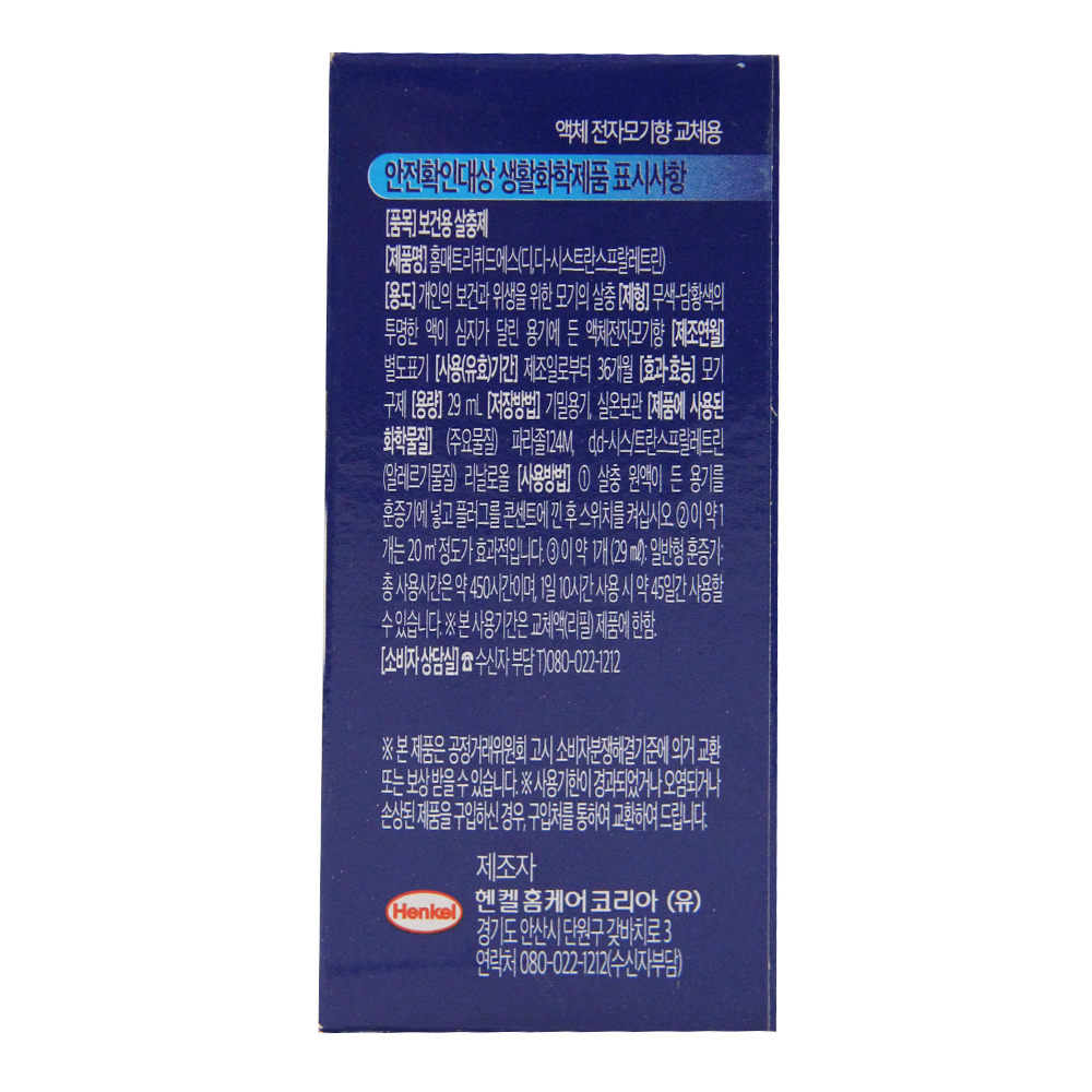 | 제품명 | 헨켈) 홈매트 리퀴드에스 리필 29ml |