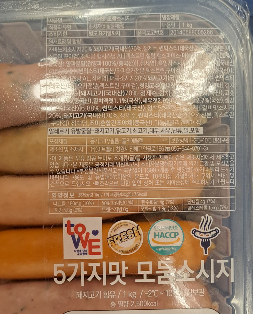 | 제품명 | 5가지맛 모둠소시지 1kg/미트벨리 |