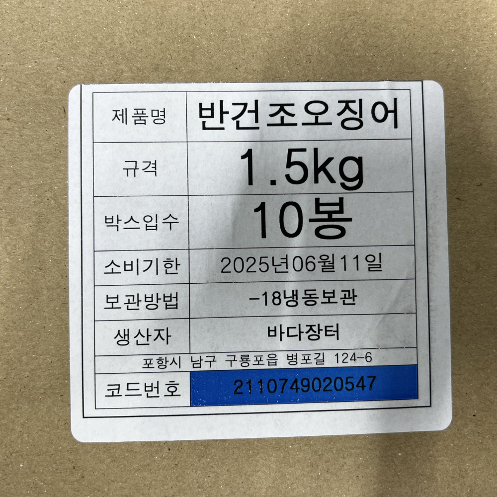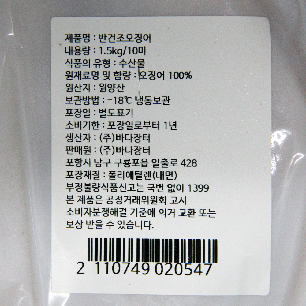 | 품목 또는 명칭 | 반건조 오징어 1.5kg·10미(피데기)/원양산 |