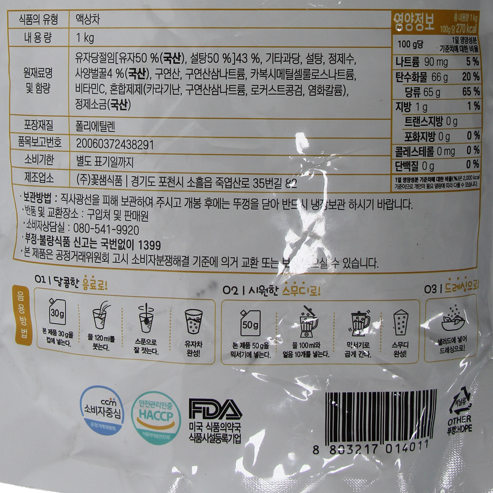 | 제품명 | 별난 알맹이 유자(파우치) 1kg /꽃샘식품 |