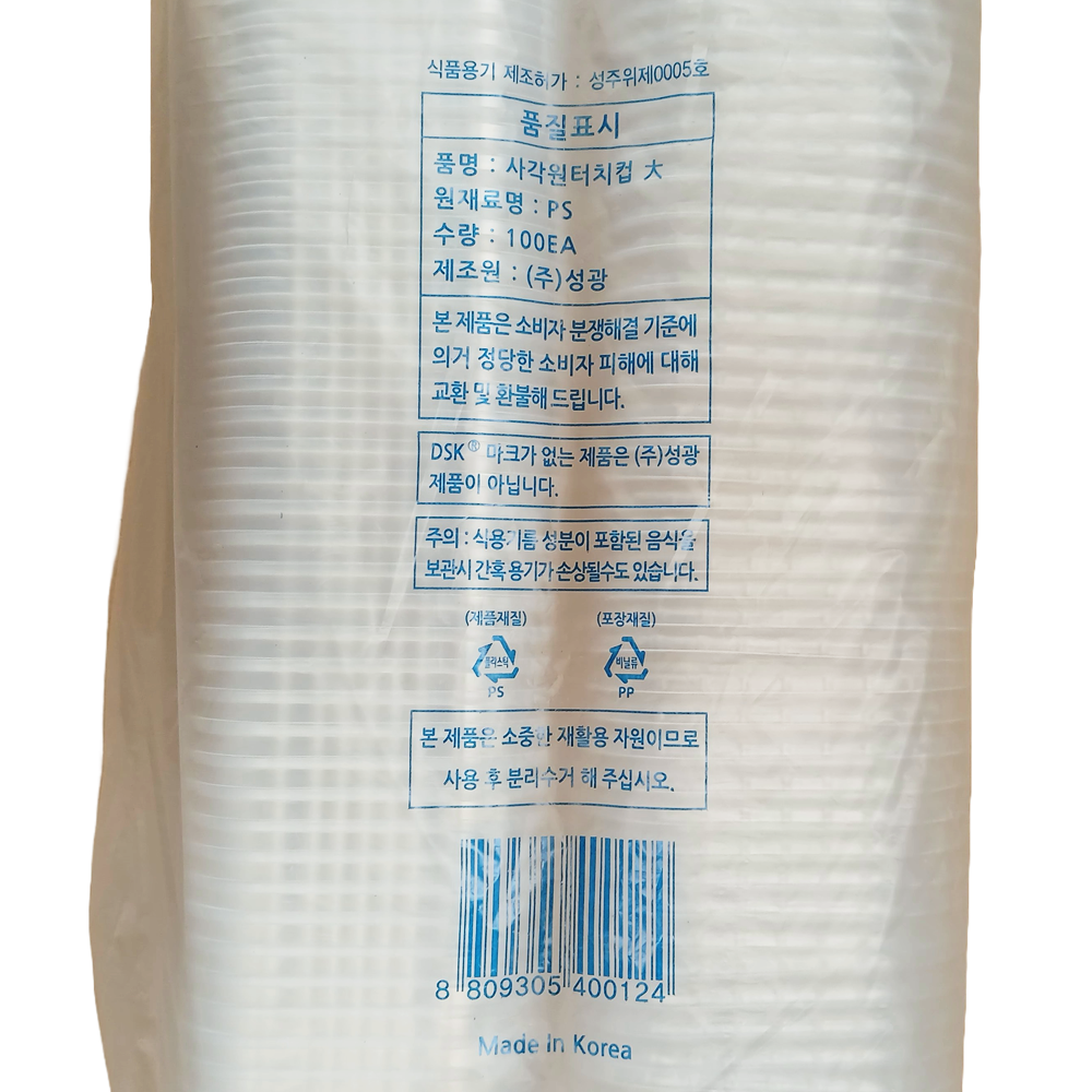 | 제품명 | DSK 사각 원터치컵 大 100개입/성광 |