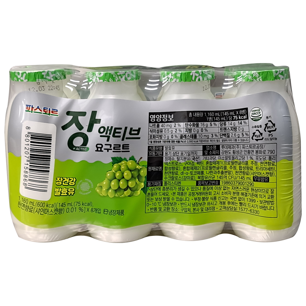 | 제품명 | 파스퇴르) 장액티브 샤인머스캣 8개입 |