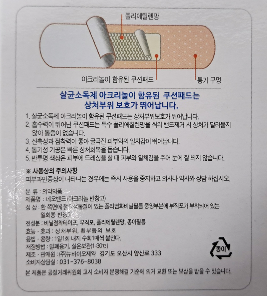 | 제품명 | 네오밴드 덕용 22매(반투명) /뉴바이오제약 |