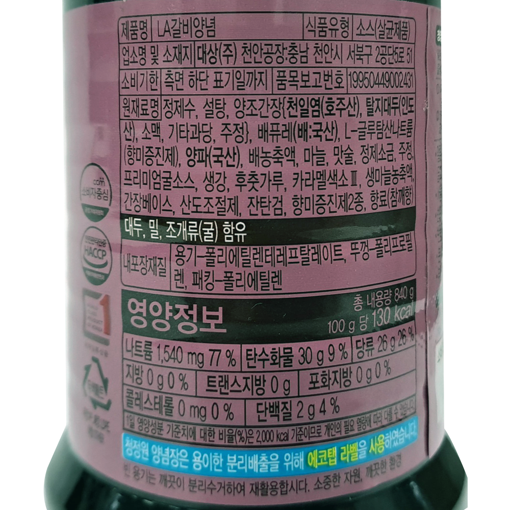 | 제품명 | 청정원) LA갈비양념 840g/대상 |