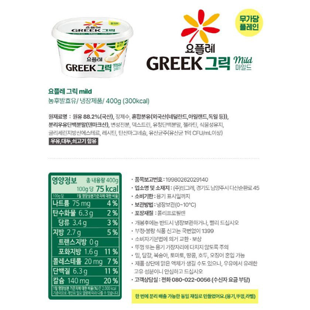| 제품명 | 빙그레)그릭마일드 무가당400g |