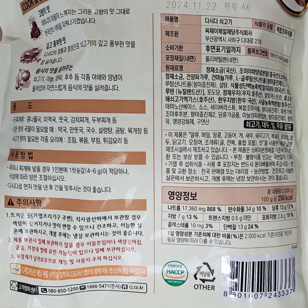 | 제품명 | 다시다 쇠고기 2kg/CJ |