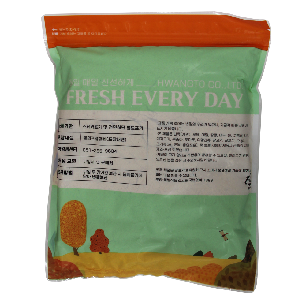 | 생산자 및 소재지(수입품의 경우 생산자, 수입자 및 제조국) | 원산지 : 중국산 수입원 : (주)황토식품 소분원 : (주)황토식품 |