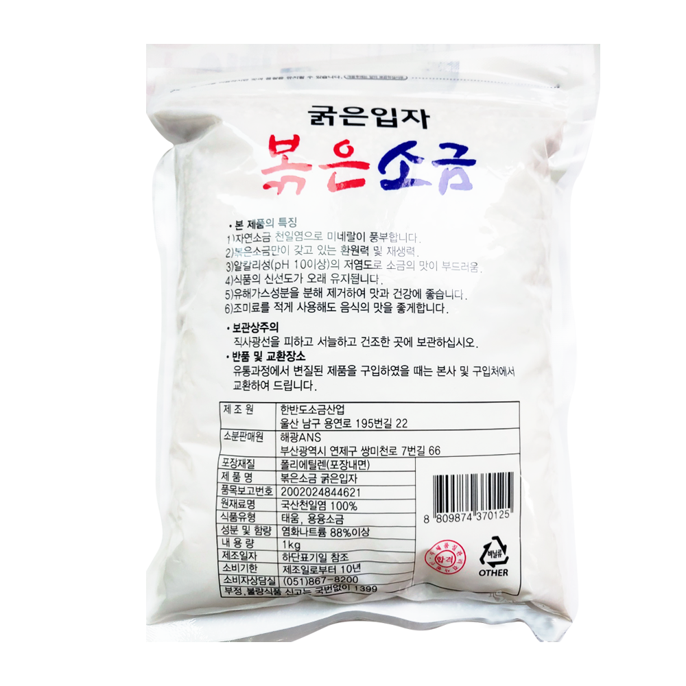 | 제품명 | 국내산 천일염 볶은소금 1kg (굵은입자)/해광ANS |