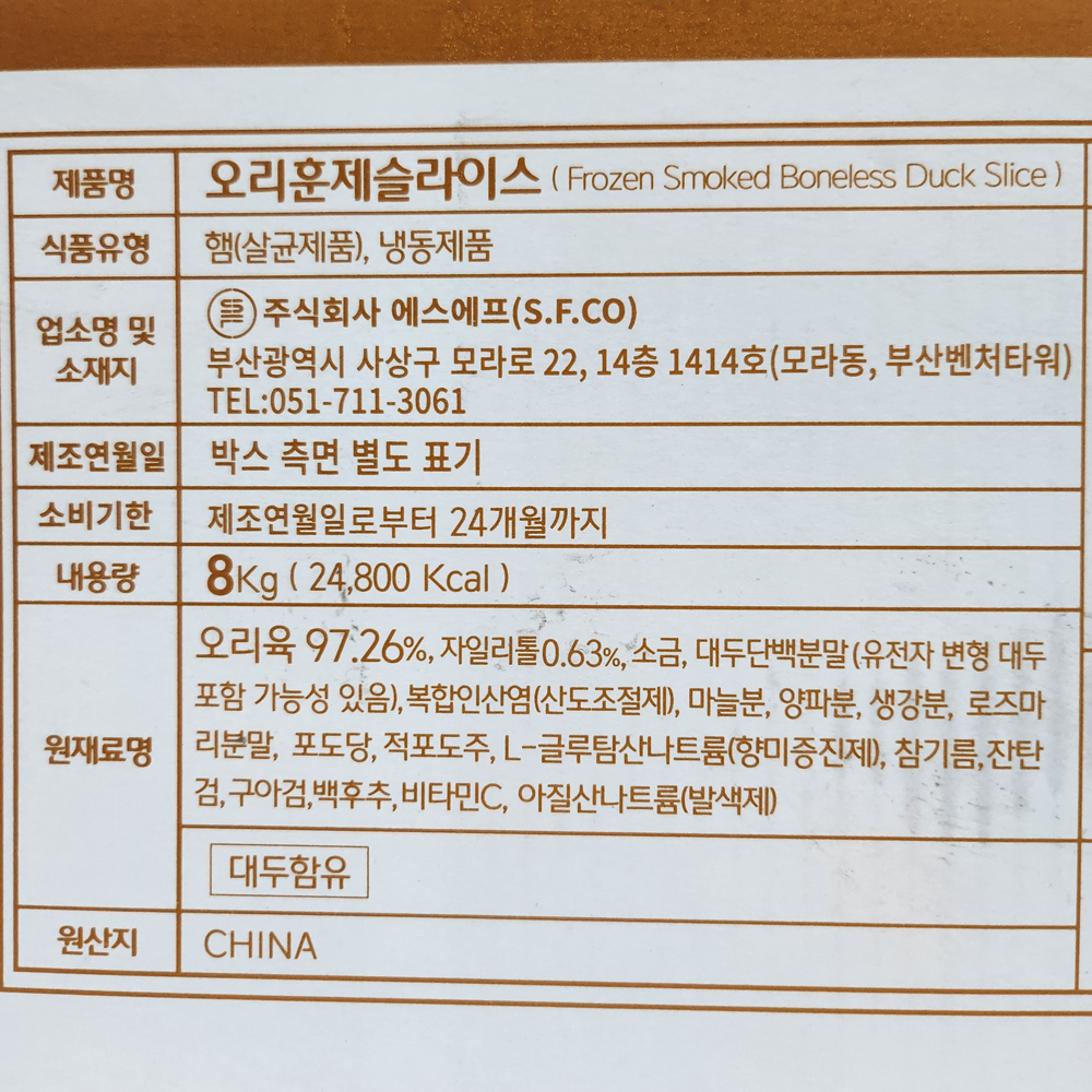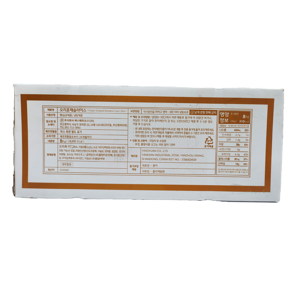 | 제품명 | 냉동 오리훈제슬라이스 8kg(박스)/에스에프 |