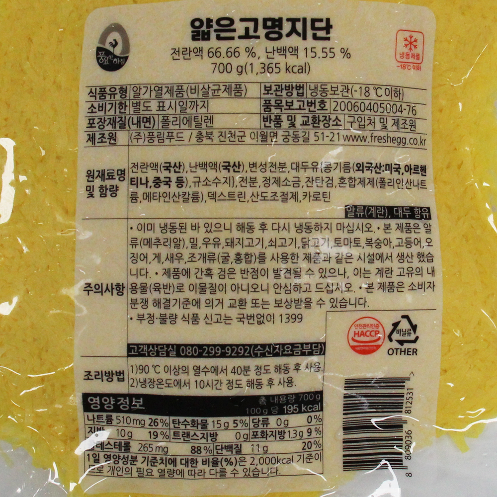 | 제품명 | 얇은 고명지단 [채] (700g 냉동)/풍림푸드 |