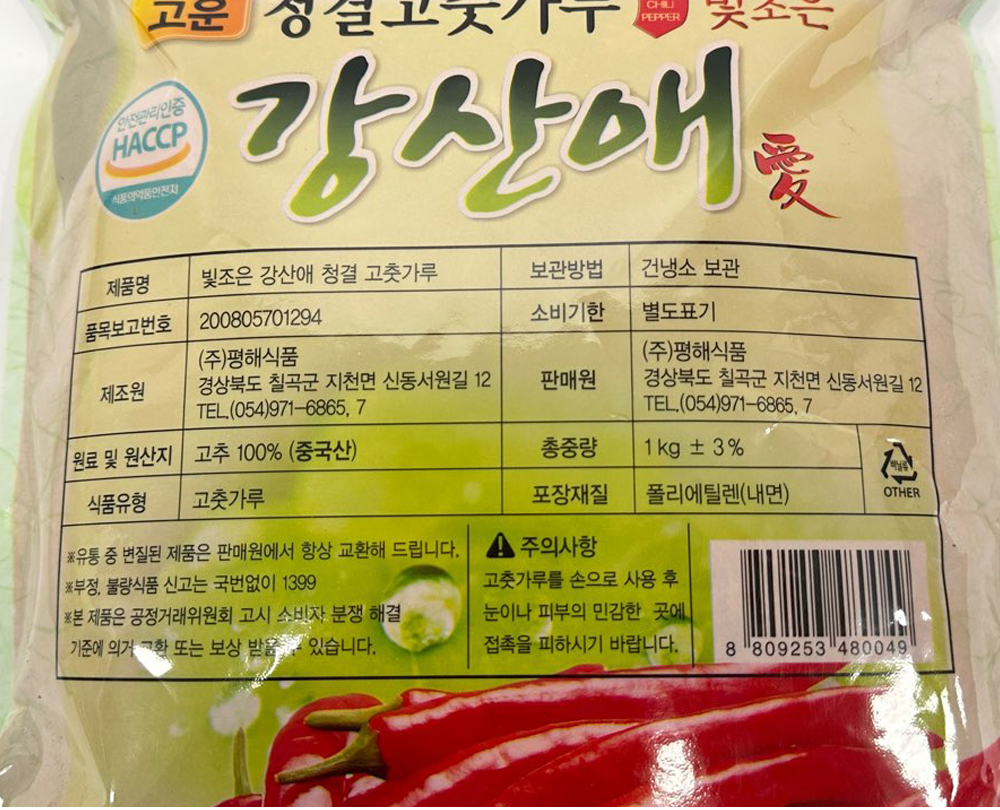 | 품목 또는 명칭 | 강산애)고운 청결고춧가루·1kg(중국산)/평해식품 |