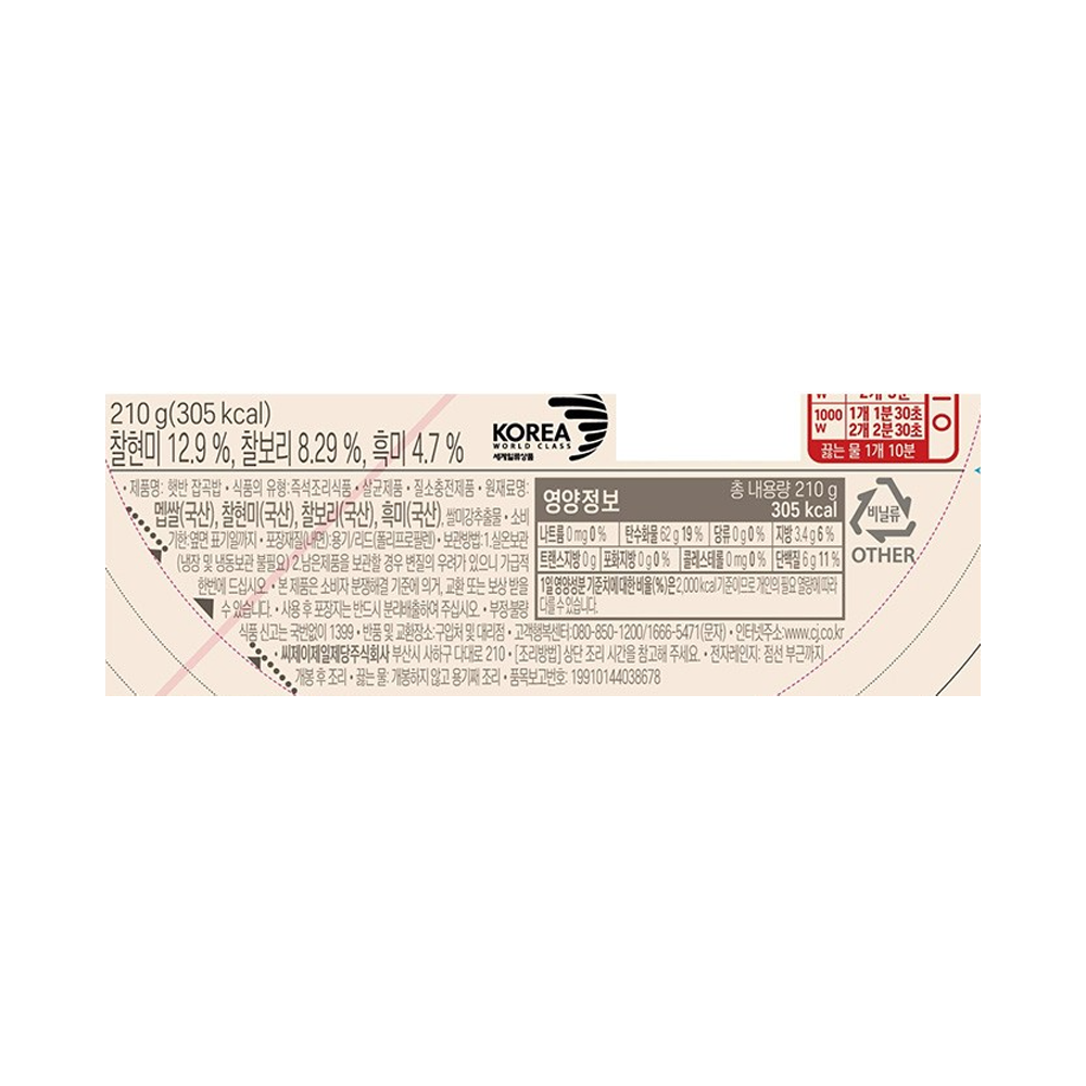 | 제품명 | 햇반 잡곡밥(210g*8입)/CJ |