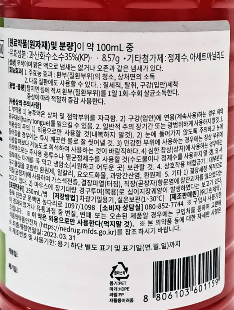 | 제품명 | 그린 과산화수소수 250ml /그린제약 |