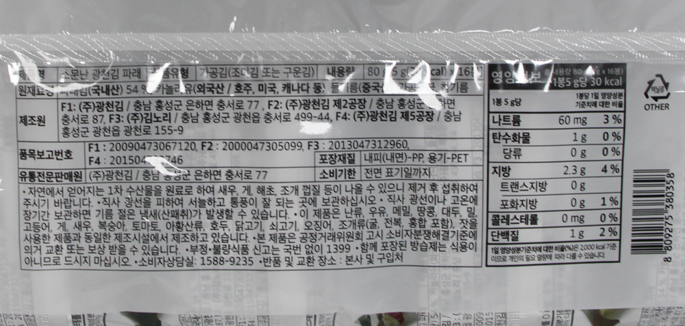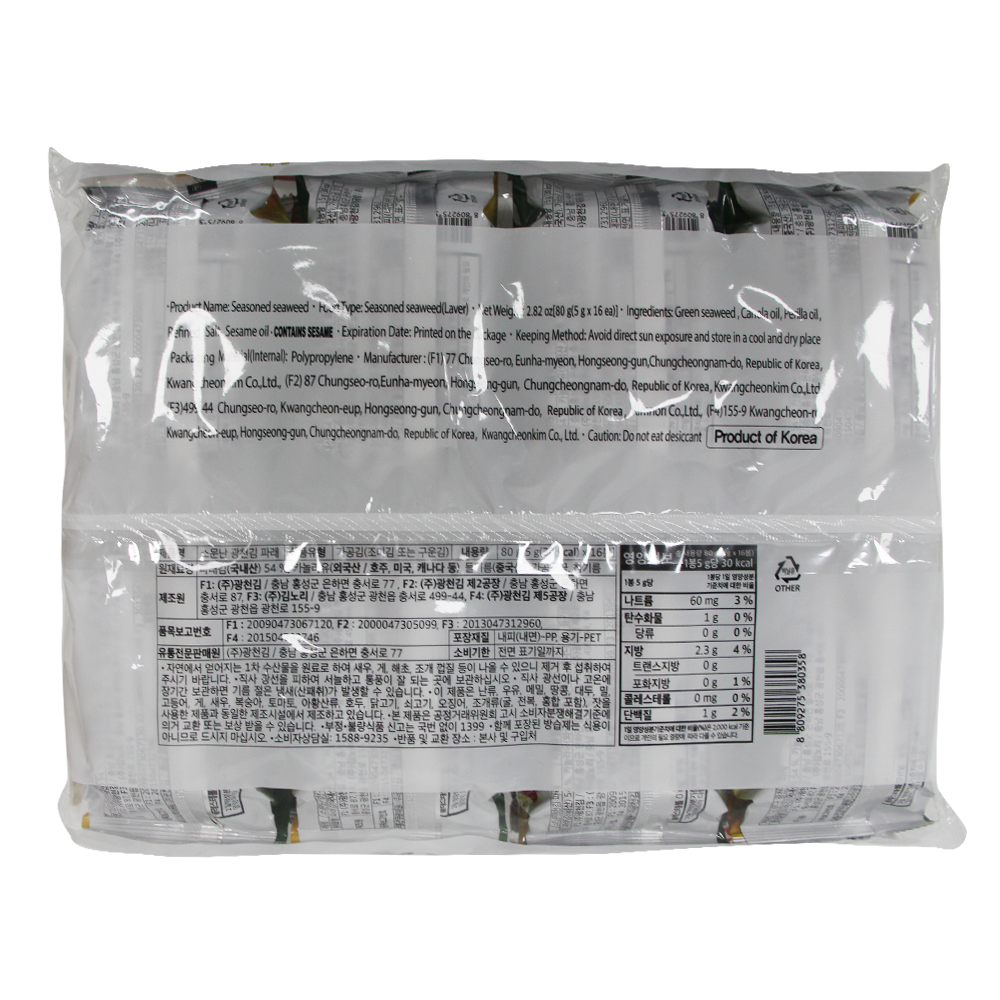| 제품명 | 소문난 광천 파래김 (5g*16봉) /광천김 |