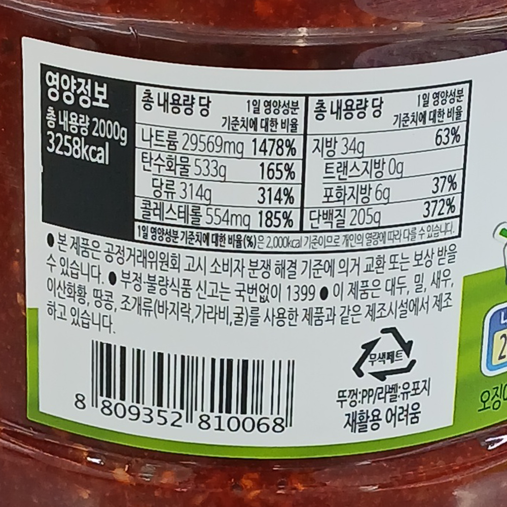 | 제품명 | 오징어젓 2kg (pet)/반찬단지 |