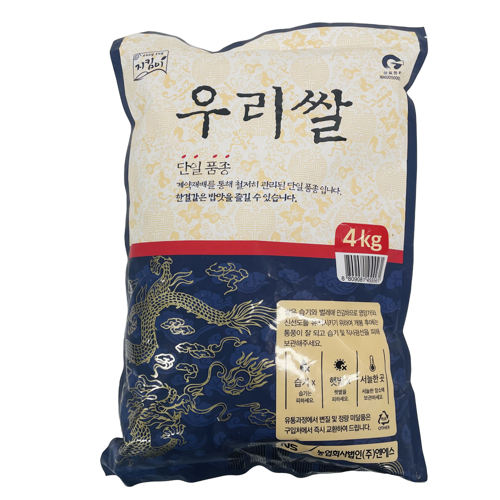 | 품목 또는 명칭 | 우리쌀·4kg(단일품종)/엔에스 |