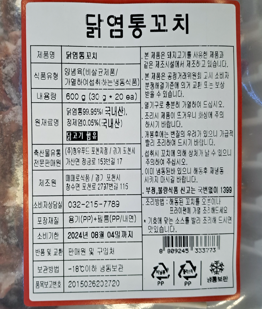 | 제품명 | 닭염통 꼬치 600g/청우푸드 |