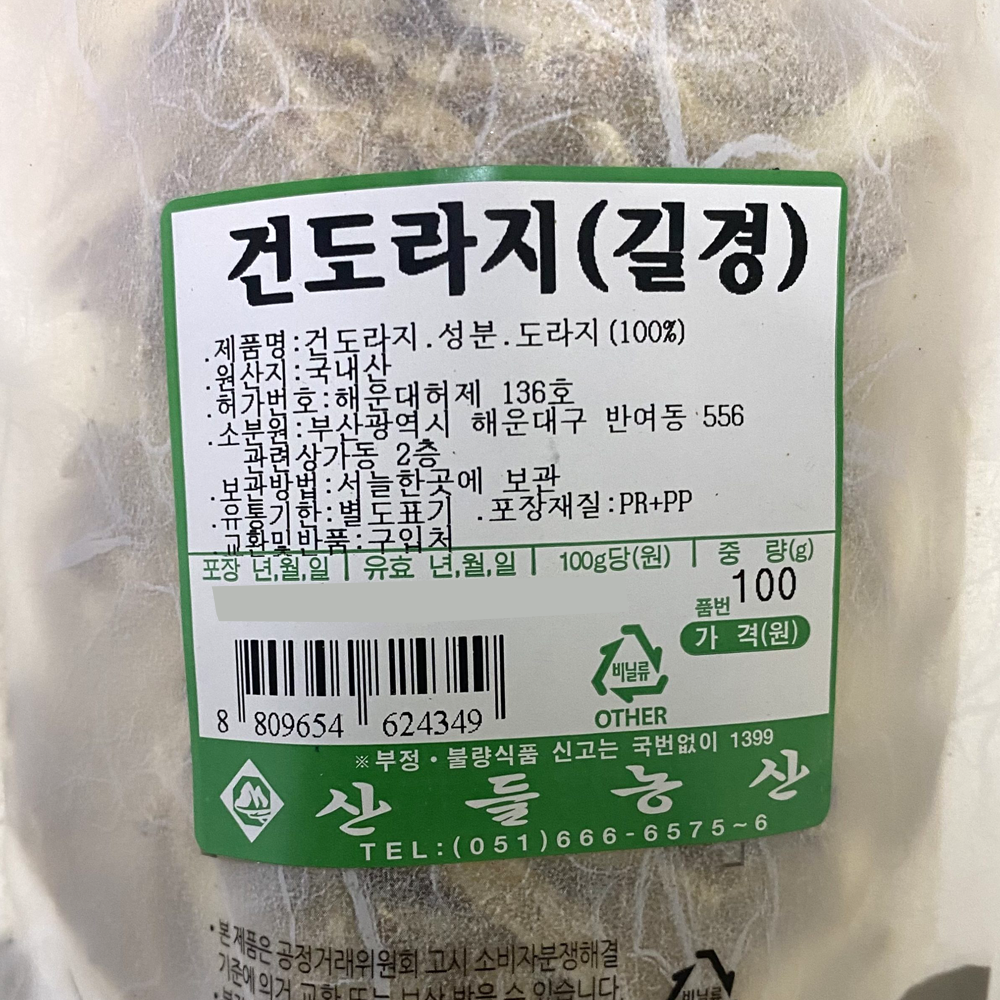| 품목 또는 명칭 | 건도라지·100g(국내산)/산들농산 |