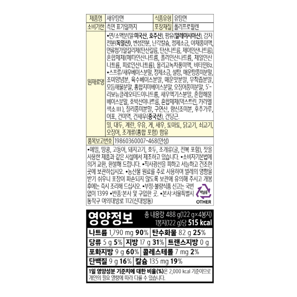 | 제품명 | 새우탕면 4개입 (488g) /농심 |