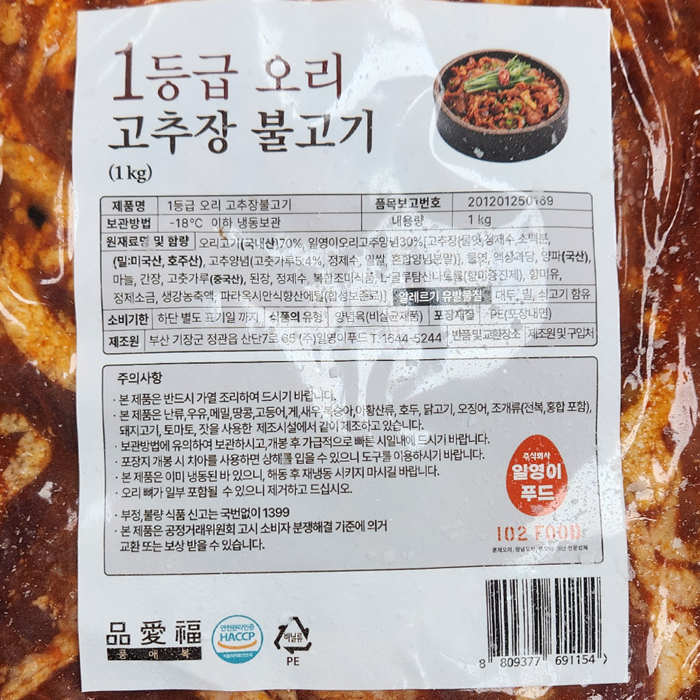 | 제품명 | 1등급 오리 고추장 불고기1kg/일영이푸드 |