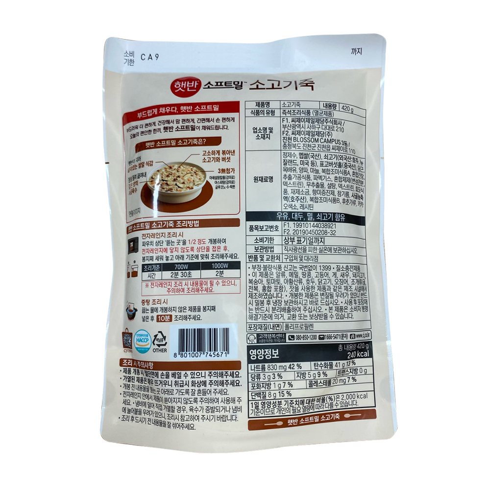 | 제품명 | 소프트밀 소고기죽 420g /CJ |
