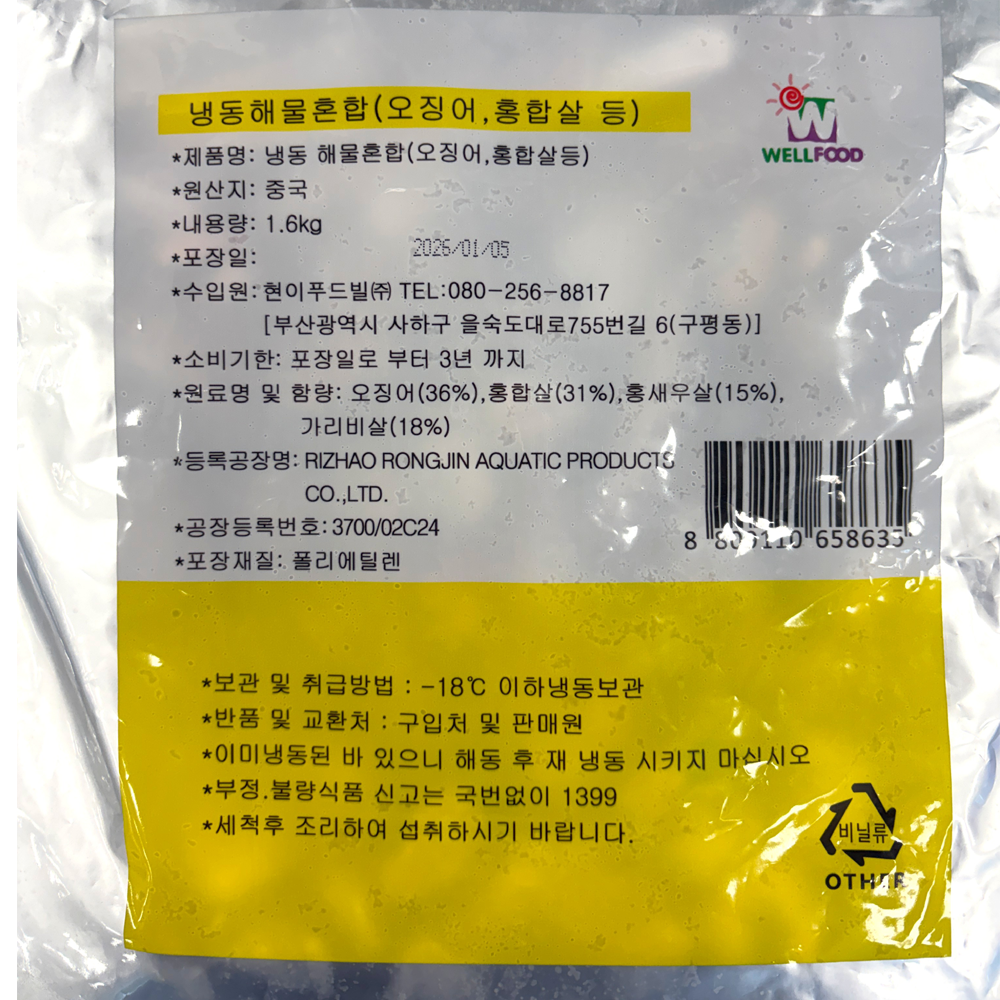 | 품목 또는 명칭 | 바다애(愛) 모듬해물 1.6kg/현이푸드빌 |