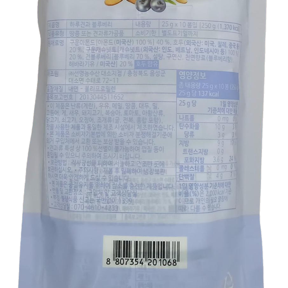 | 제품명 | 하루견과 블루베리 10개입/선명농수산 |