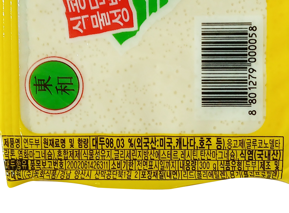 | 원재료명 및 함량(농수산물의 원산지 표시에 관한 법률에 따른 원산지 표시 포함) | 대두98.03% (외국산 : 미국,캐나다, 호주등) |