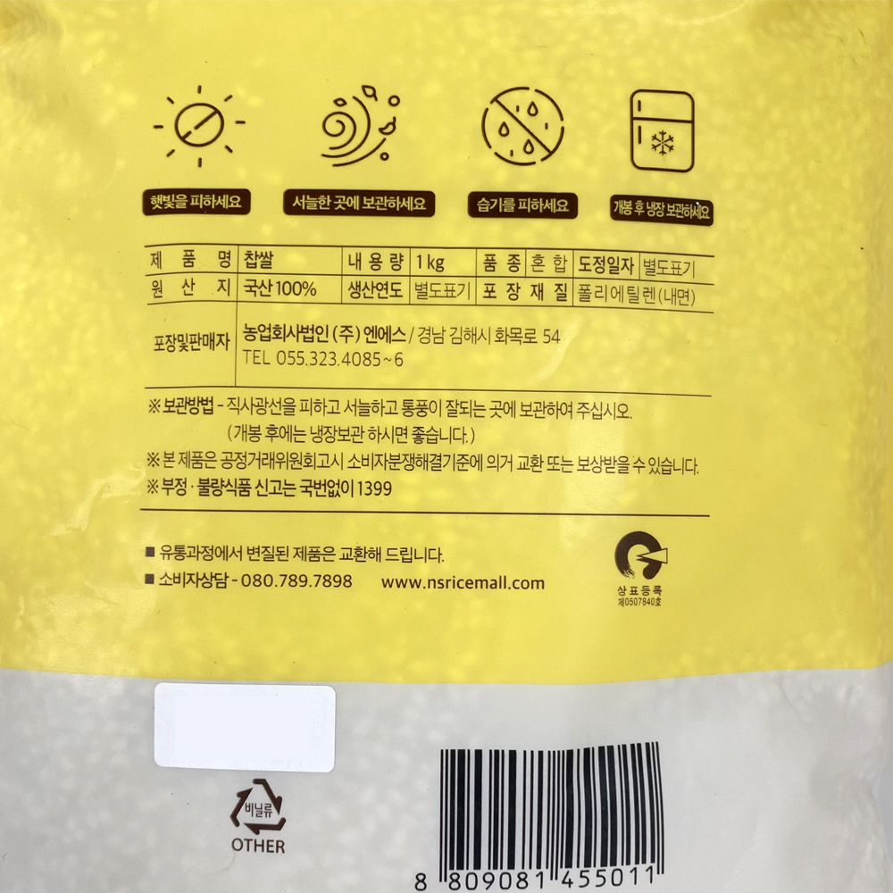 | 품목 또는 명칭 | 찹쌀·1kg/엔에스 |