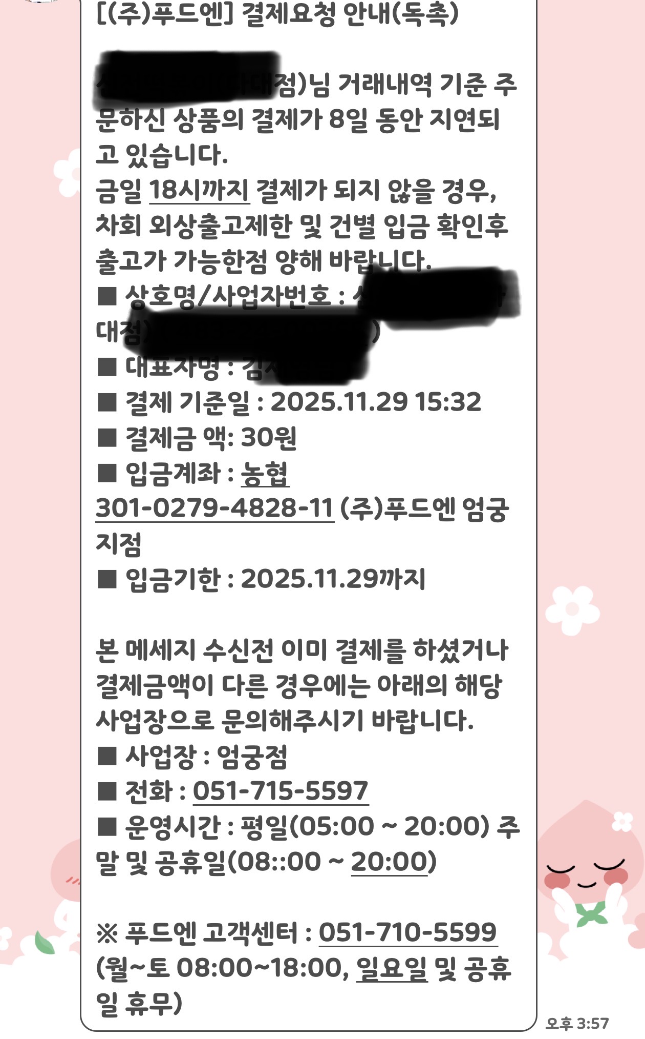아쉬워요! 미수금..카드결제했는데 9일후에 독촉문자 30원..... |
