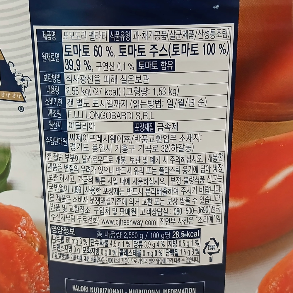 | 제품명 | 프라텔리 롱고발디 토마토홀 2.5kg/이탈리아 |