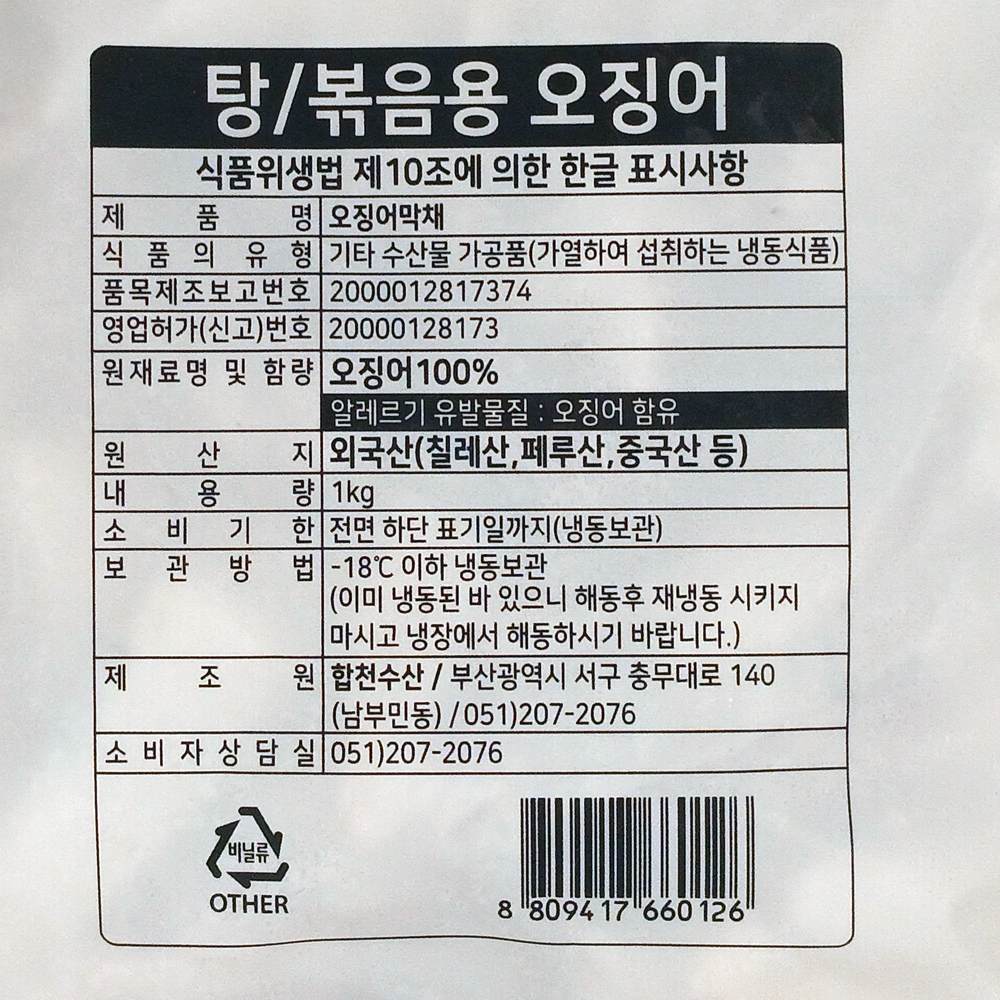 | 품목 또는 명칭 | 오징어막채 1kg (탕.볶음용 외국산)/합천수산 |