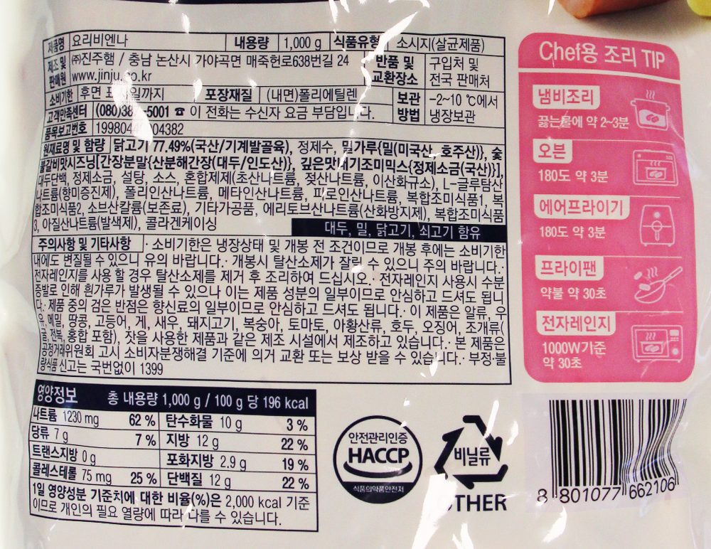 | 제품명 | 요리비엔나 1kg/진주햄 |