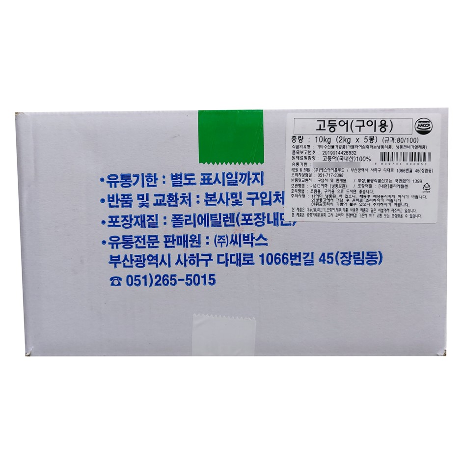 | 품목 또는 명칭 | 국산 고등어구이용 2kg (80/100)/에스아이홀푸드 |