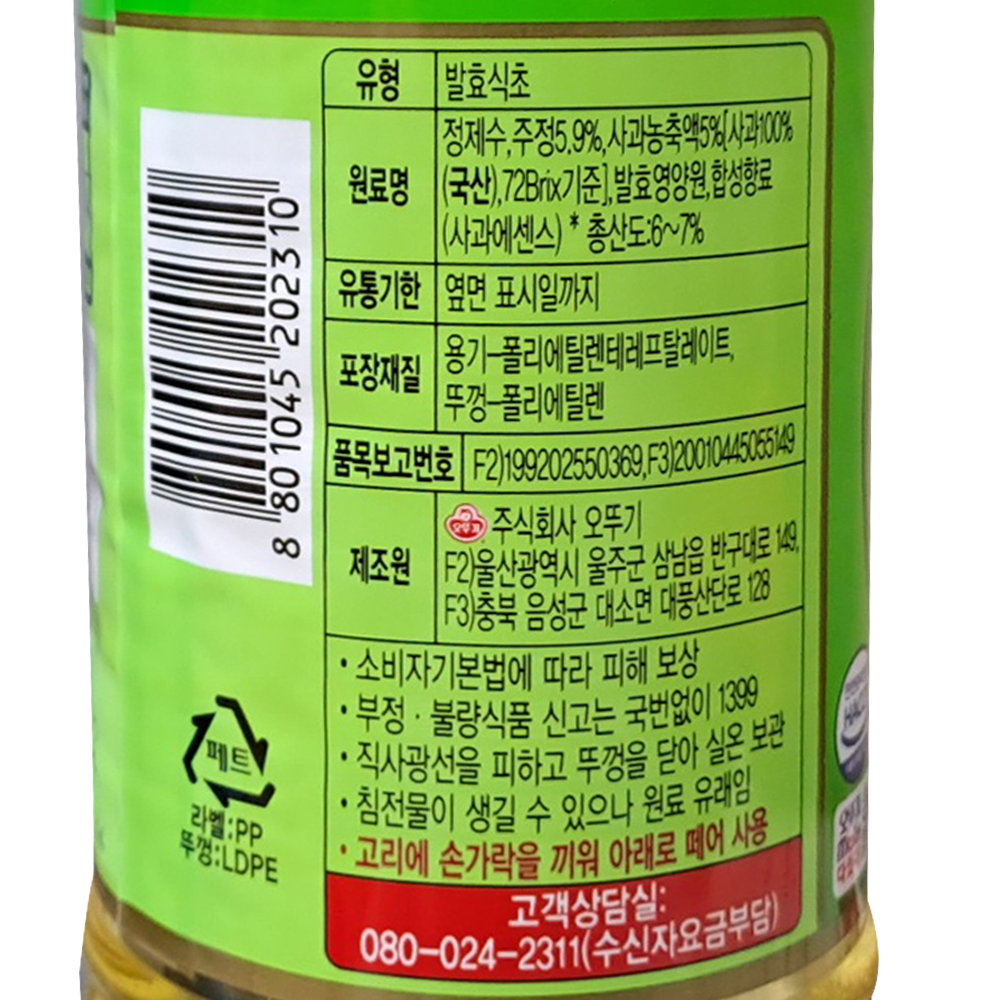 | 제품명 | 사과식초 900ml/오뚜기 |